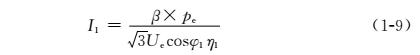 cosφ1———電動(dòng)機(jī)在任意負(fù)載下的功率因數(shù); η1———電動(dòng)機(jī)在任意負(fù)載下的效率; β———電動(dòng)機(jī)的負(fù)載系數(shù) (即負(fù)載率)。