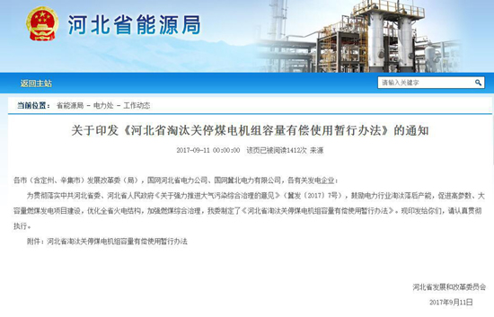 關(guān)于《河北省淘汰關(guān)停煤電機(jī)組容量有償使用暫行辦法》的通知