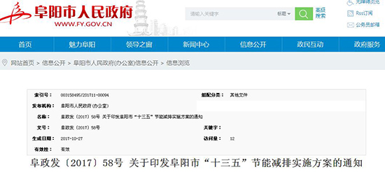 阜陽市“十三五”節(jié)能減排實施方案