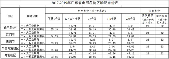 廣東省公布:電網(wǎng)各價(jià)區(qū)輸配電價(jià)