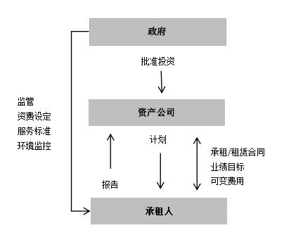 在租賃合同模式下,社會資本負(fù)責(zé)提供全部服務(wù),并承擔(dān)滿足有關(guān)質(zhì)量和服務(wù)標(biāo)準(zhǔn)的義務(wù)。除了新的投資和重置投資出政府負(fù)責(zé)外,運營商提供服務(wù)并自負(fù)費用和風(fēng)險。租賃合同的期限一般是10年,續(xù)期可長達20年。服務(wù)的提供者由政府變更為社會資本,運營和維護的財務(wù)風(fēng)險全部由社會資本運營商承擔(dān),特別是運營商承擔(dān)虧損及消費者的未償債務(wù)。