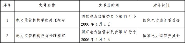根據(jù)投訴舉報(bào)處理工作實(shí)際情況,并考慮到適用主體、調(diào)整對(duì)象均發(fā)生了變化,現(xiàn)決定宣布失效《電力監(jiān)管機(jī)構(gòu)舉報(bào)處理規(guī)定》(國家電力監(jiān)管委員會(huì)令第17號(hào))、《電力監(jiān)管機(jī)構(gòu)投訴處理規(guī)定》(國家電力監(jiān)管委員會(huì)令第18號(hào))。