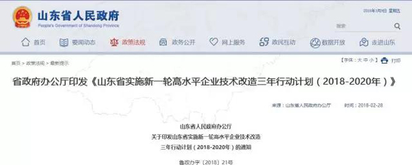日前,山東省印發(fā)了《山東省實施新一輪高水平企業(yè)技術(shù)改造三年行動計劃(2018-2020年)》(以下簡稱“行動計劃”)。旨在充分發(fā)揮企業(yè)技術(shù)改造在推動工業(yè)轉(zhuǎn)型升級中的重要作用,促進全省企業(yè)技術(shù)改造向更廣領(lǐng)域更高水平發(fā)展,加快推進工業(yè)領(lǐng)域新舊動能轉(zhuǎn)換,實現(xiàn)制造強省建設(shè)目標。