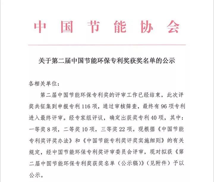 近期,中國節(jié)能協(xié)會公布了第二屆中國節(jié)能環(huán)保專利獎獲獎名單。