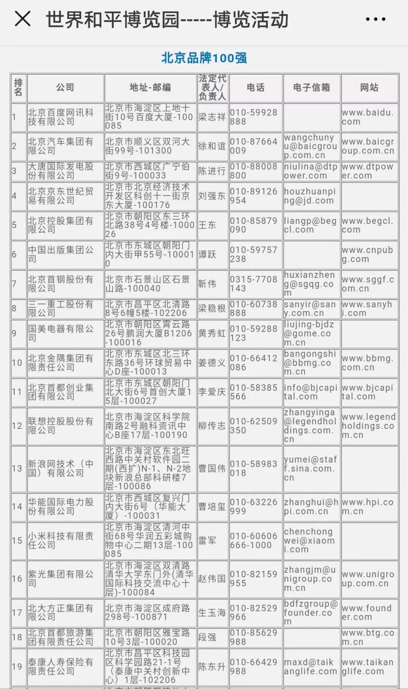 我們可以來圍觀一下北京品牌百強(qiáng)上榜名單: