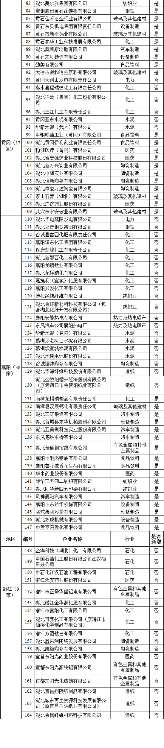 湖北省發(fā)改 委日前印發(fā)了《湖北省2017年碳排放權(quán)配額分配方案的通知》,根據(jù)對湖北省2014—2016年任一年綜合能耗1萬噸標(biāo)準(zhǔn)煤及以上的工業(yè)企業(yè)碳排放核查的結(jié)果,確定344家企業(yè)作為2017年納入碳排放配額管理的企業(yè)(以下簡稱“納入企業(yè)”),涉及電力、鋼鐵、水泥、化工等15個(gè)行業(yè)。詳情如下:
