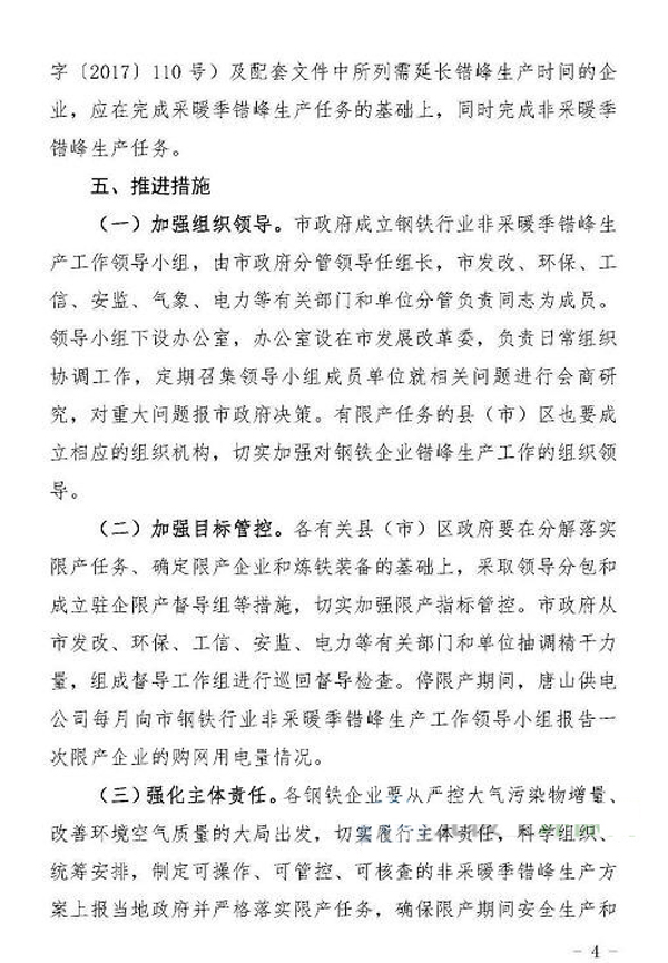 唐山市鋼鐵行業(yè)2018年采取非采暖季錯峰生產(chǎn)