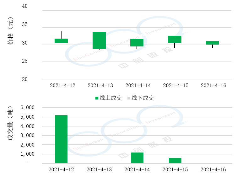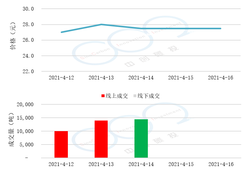 線(xiàn)上成交價(jià)最低為27.00元,最高為28.00元,平均碳價(jià)為27.50元。