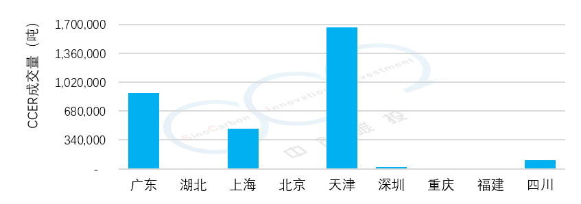 本周,CCER共成交314.9萬(wàn)噸,是上周成交量的5倍,其中廣東、天津成交活躍,上海、四川、深圳也有一定成交量。