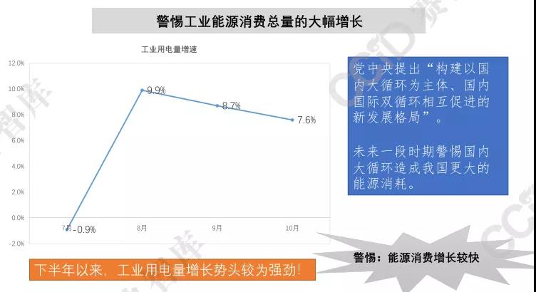 2020年,我國(guó)工業(yè)能源消費(fèi)呈現(xiàn)"前低后高"走勢(shì),8、 9、10月份工業(yè)用電量增速均超過(guò)5%,處于近年來(lái)較高水平。