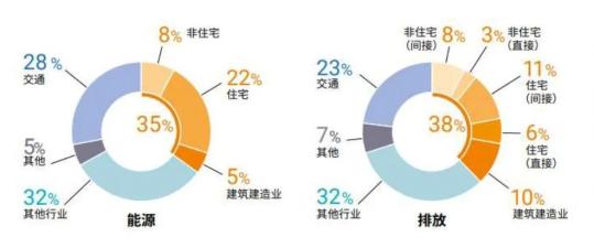 2019年全球建筑建造行業(yè)終端能耗和碳排放占比
