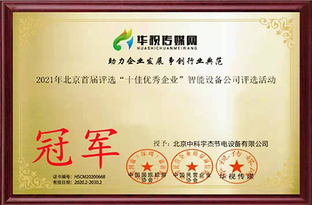 近日,2021年北京首屆評選“十佳優(yōu)秀企業(yè)”智能設備公司評選活動圓滿落幕。此次評選活動中北京中科宇杰節(jié)電設備有限公司摘得桂冠。
