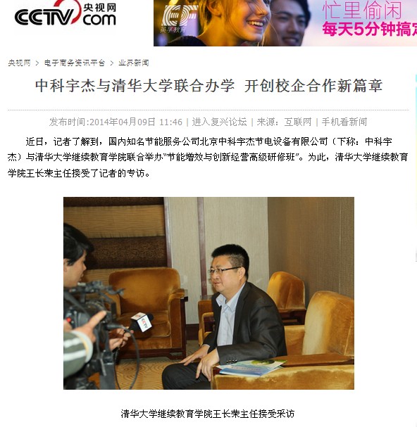 ????? 近日,記者了解到,國內(nèi)知名節(jié)能服務(wù)公司北京中科宇杰節(jié)電設(shè)備有限公司(下稱:中科宇杰)與清華大學繼續(xù)教育學院聯(lián)合舉辦“節(jié)能增效與創(chuàng)新經(jīng)營高級研修班”。為此,清華大學繼續(xù)教育學院王長榮主任接受了記者的專訪。