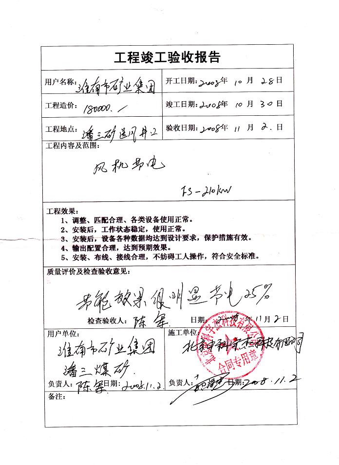 項目順利通過驗收,結(jié)果表明,中科宇杰的智能風(fēng)機節(jié)電系統(tǒng)的節(jié)能效率達(dá)到30%,投資回報期不到兩年,超出了集團領(lǐng)導(dǎo)的節(jié)能預(yù)期,取得了極大的經(jīng)濟效益和社會效益。