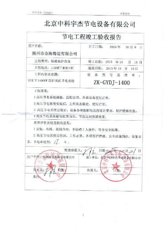揚州市金海鑄造有限公司(節(jié)電率:17%)