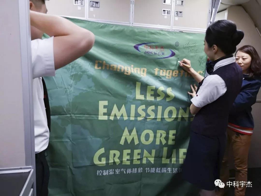 ?本次公益宣傳愛(ài)心傳遞活動(dòng)得到國(guó)航CA877機(jī)組成員大力支持,據(jù)乘務(wù)長(zhǎng)介紹國(guó)航一直注重綠色低碳,國(guó)航機(jī)組成員作為節(jié)能減排的倡導(dǎo)者,保護(hù)環(huán)境,人人有責(zé),通過(guò)參與中科宇杰本次活動(dòng),呼吁全球共同參與,傳遞正能量,積極參與的溫室氣體減排行動(dòng)?!癓ess Emissions More Green Life”活動(dòng),并在的綠色宣傳旗上簽字,節(jié)能低碳我先行,共同參與,共同倡導(dǎo),節(jié)能低碳生活新風(fēng)尚。