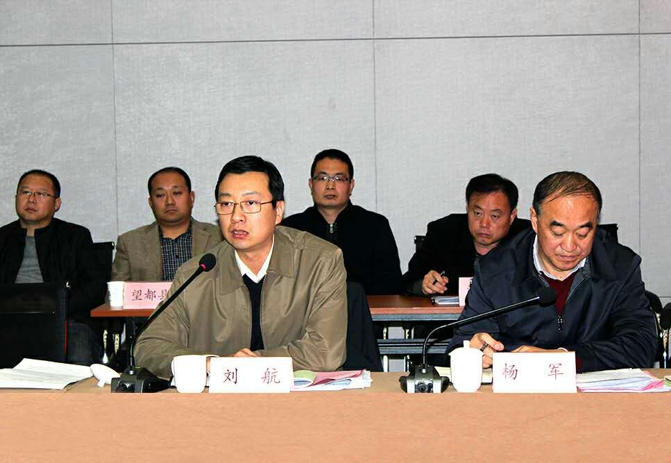 ▲保定委常委、副市長劉航(左)發(fā)表講話,保定市政府副秘書長、市協同辦主任楊軍參會(右)